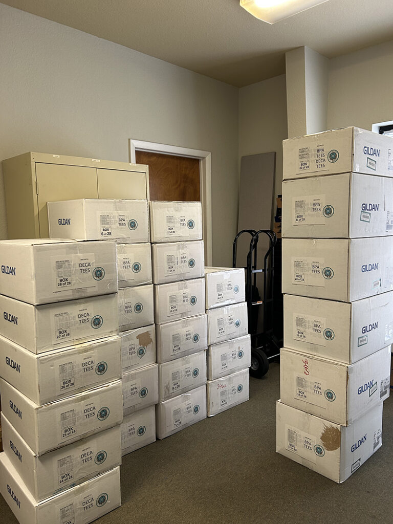 PACKAGING We understand that one of the hardest parts of your conference set up is to distribute your tees. That is why we pre-divide your tees and package them by Chapter for easy distribution at your event, allowing you to focus on the other aspects of your conference. This will allow for your registration staff to simply look at the manifest, locate the box number for a chapter’s tees, and hand out the prepacked labeled tees to that chapter. Easy as 1, 2, 3!